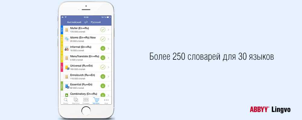 Закачивать на телефон все 250 словарей совсем не обязательно. ABBYY Lingvo просто дает пользователям широкий выбор – с возможностью установить только те словари и языки, которые пригодятся им прямо сейчас – для учебы, путешествия и так далее. При этом стоит отметить, что на этапе знакомства с новым языком вполне можно обойтись бесплатными базовыми словарями – это 50 словарей от известных издателей с общеупотребительной лексикой и распространенными выражениями. Остальные словари включают более продвинутый языковой контент – профессиональную и научную терминологию, тонкости разговорных выражений. Они понадобятся для более глубокого знакомства с языком и культурой страны.