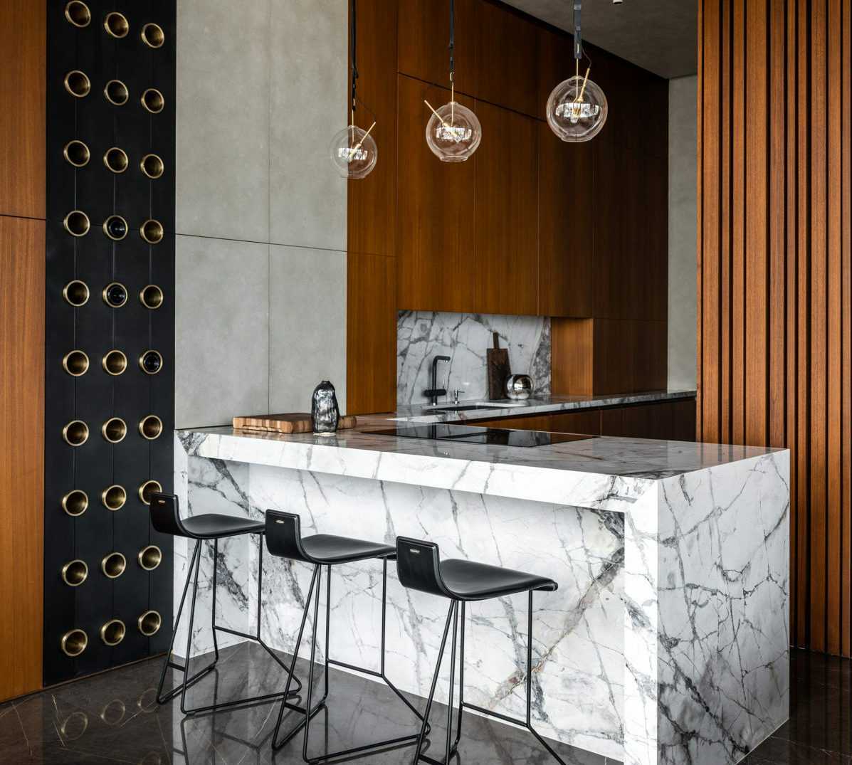 Биофильный дизайн — это не только обилие зелени. Немаловажную роль играет добавление в ваше пространство натуральных материалов. Смена синтетических поверхностей на дерево, камень и мрамор создаст теплое и умиротворяющее пространство. Не забывайте о природных составляющих и при подборе аксессуаров. Отдавайте предпочтение керамике с натуральной отделкой и мягкому декору из шерсти, хлопка, кожи и шелка.