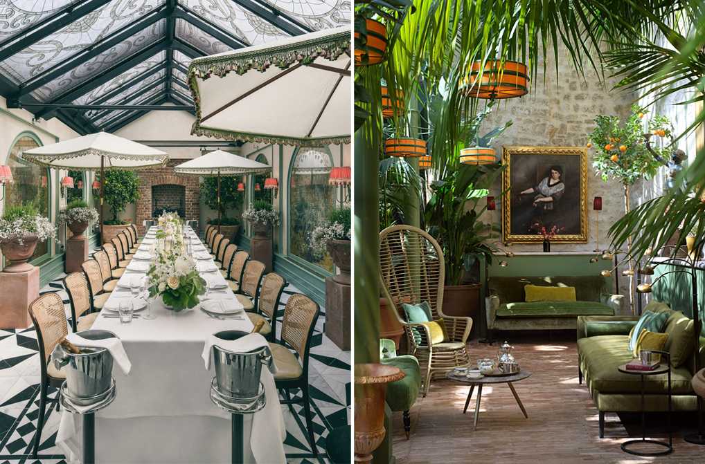 • Но особенно удачно стилизация оранжереи будет в пространстве, предназначенном для ресторана или уютного кафе, где много воздуха, высокие потолки и подходящий метраж. А изящная легкая мебель из ротанга, изысканные подвесные светильники, однотонный текстиль в нежных оттенках, черно-белая плитка дополнят величественную обстановку, пропитанную наследием великой эпохи.