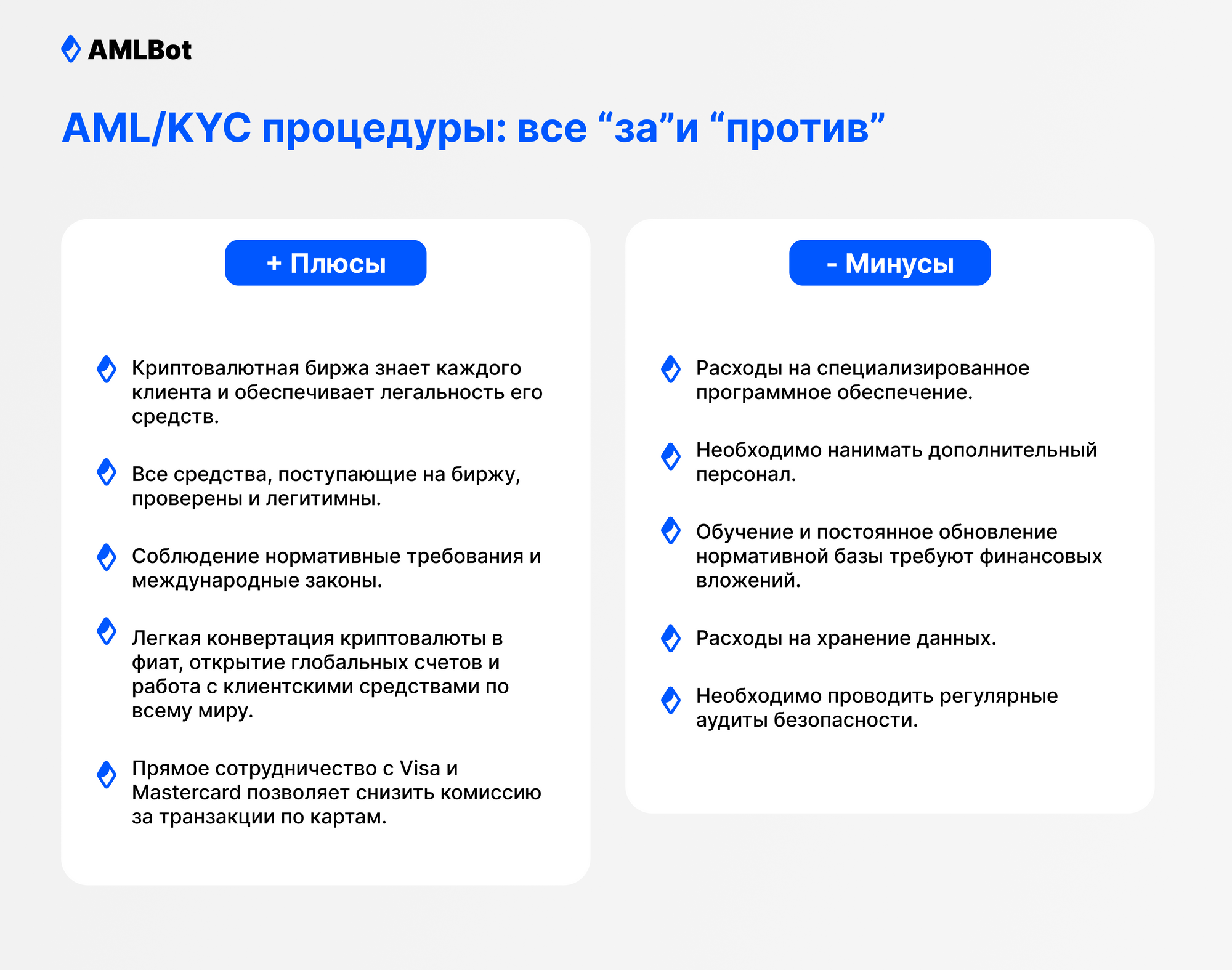 Отдельные площадки злоупотребляют процедурой KYC/AML, замораживая средства пользователей под предлогом неполных сведений о происхождении денег. В этом случае клиенты имеют право вернуть свои средства в судебном порядке, что было бы невозможным без идентификации. Рекомендация: тщательно изучайте площадки перед тем, как использовать их.