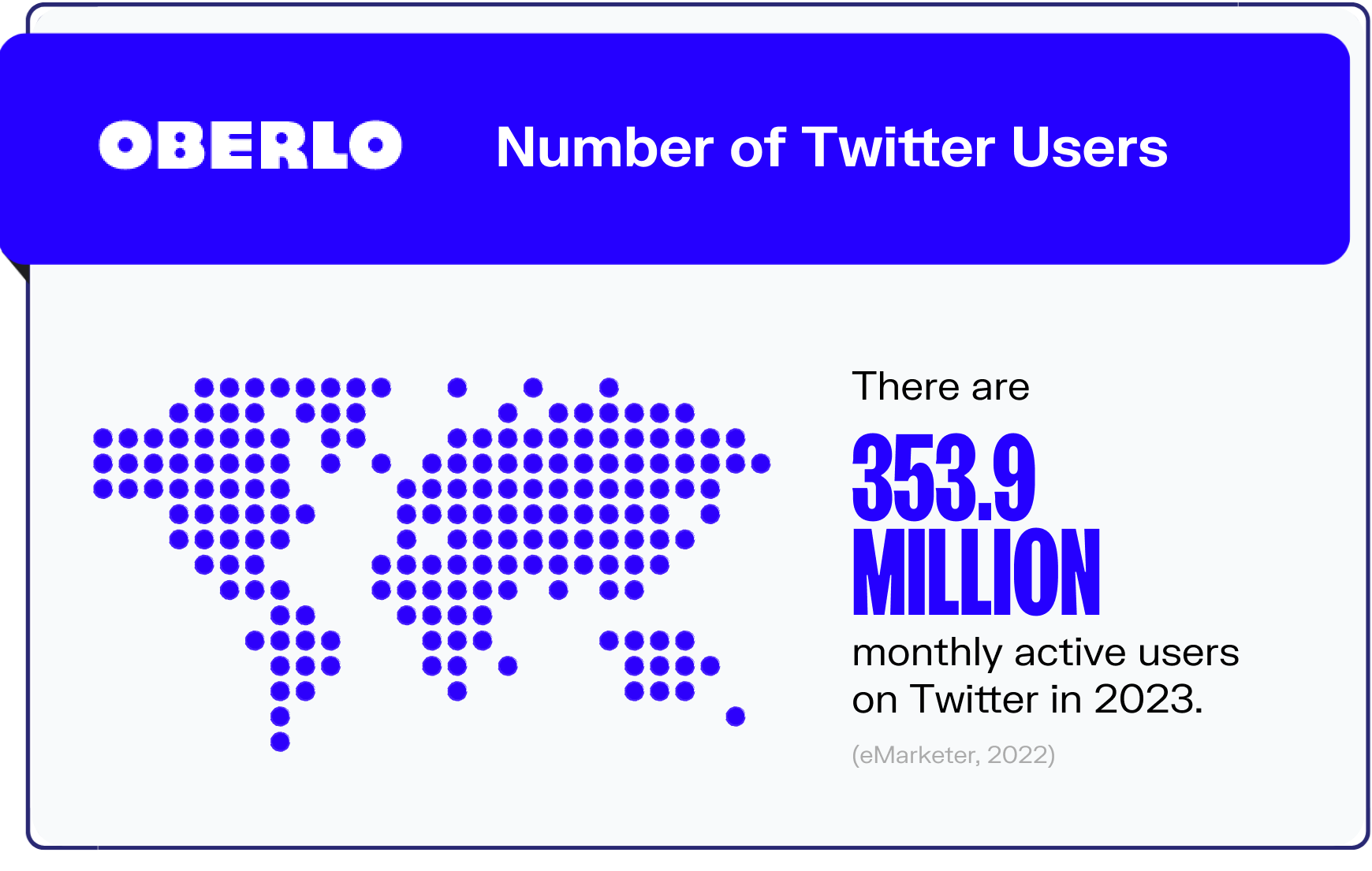 According to experts’ recent estimates, there are 353.9 million monthly active users on Twitter in 2023 (eMarketer, 2022). This is a 3.9% year-over-year decrease and makes up 9.4% of the total number of social media users worldwide.