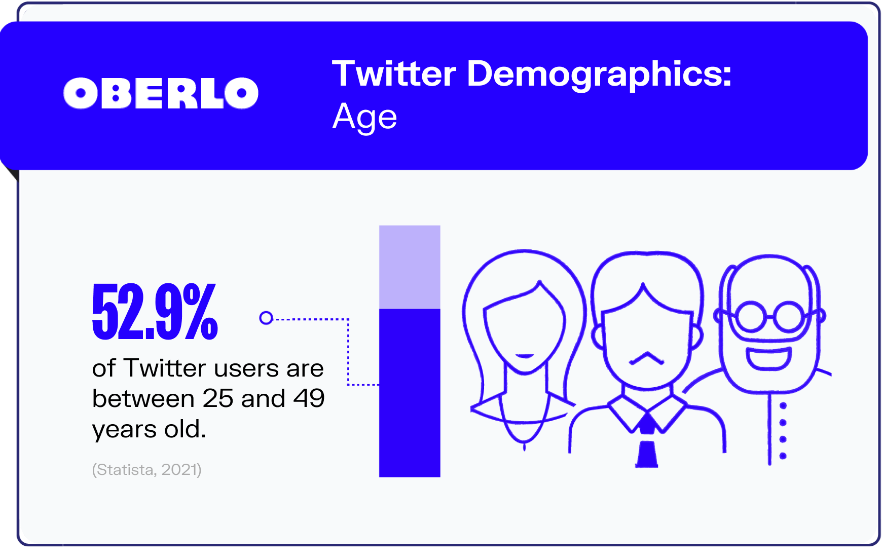 Approximately six of every ten (59.2%) Twitter users worldwide are between 25 and 49 years old (Statista, 2021). This paints a pretty clear picture of Twitter’s appeal to an audience that’s more mature than those of Snapchat and Instagram.