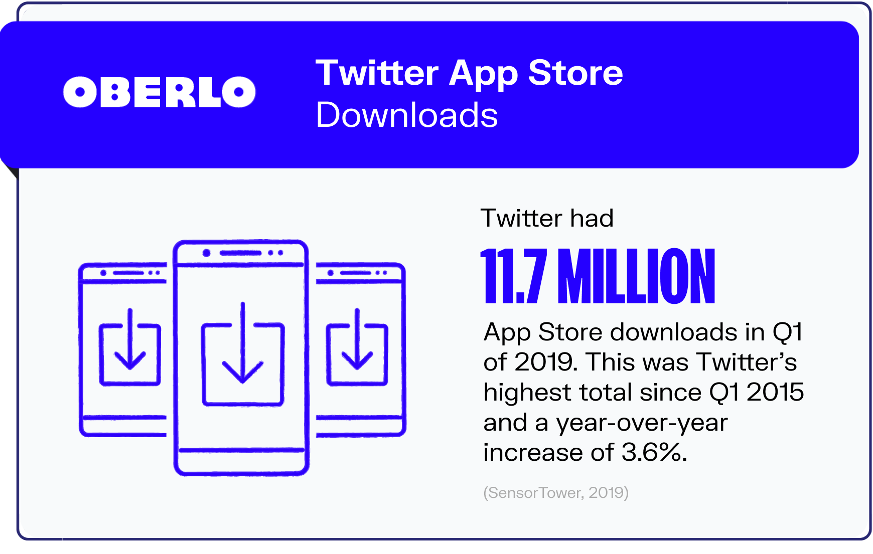 There were 11.7 million App Store downloads of the Twitter app in the first quarter of 2019 – registering a year-over-year increase of 3.6% (Sensor Tower, 2019).