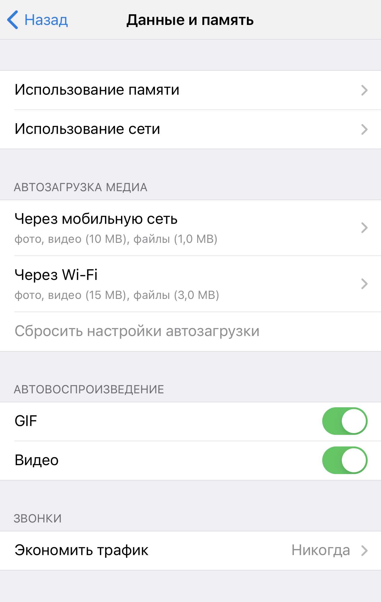 - Кроме того, вы можете выставить расход трафика, а также отключить загрузку медиа для конкретных файлов: фото, видео и прочих форматов.