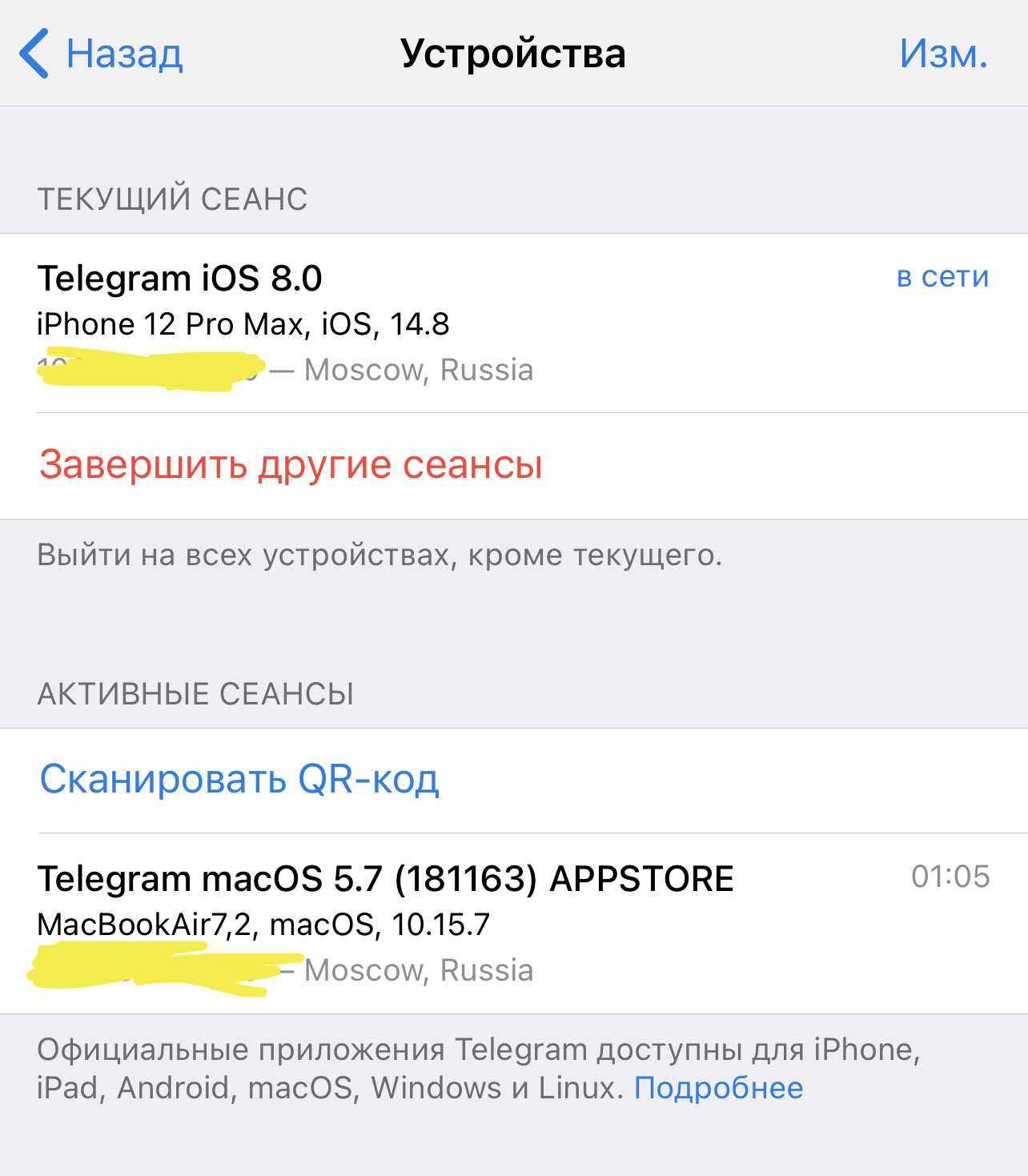 — возможность удаления активных сессий на других устройствах (например если вошли в свой аккаунт с чужого устройства и забыли выйти);