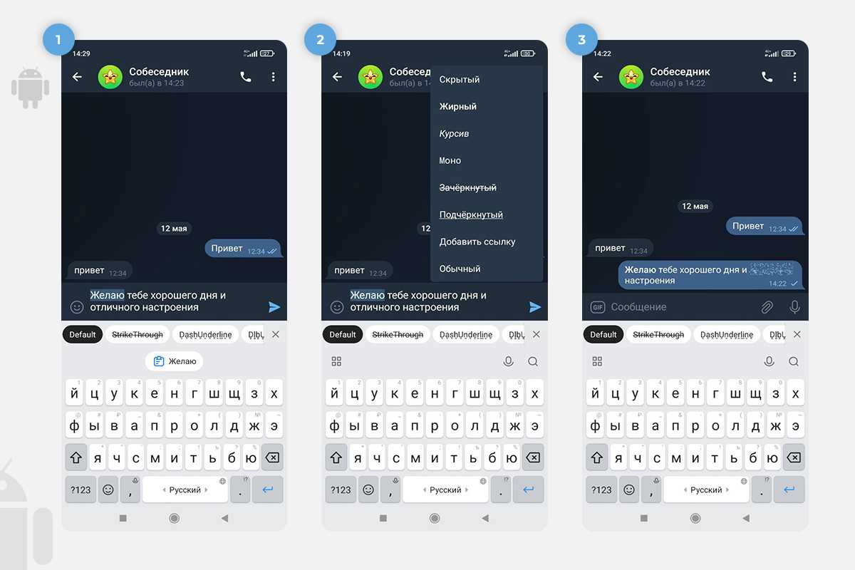 — доступно форматирование текста сообщений (шрифты жирный, курсив, моноширинный);