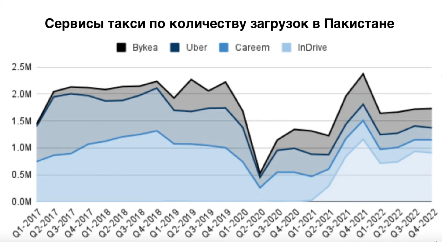 К примеру, они зашли на рынок Пакистана в 2021 году и быстро приблизились к числу скачиваний Uber и других крупных приложений. Которые уже больше 5 лет строили там рынок и наращивали базу водителей: