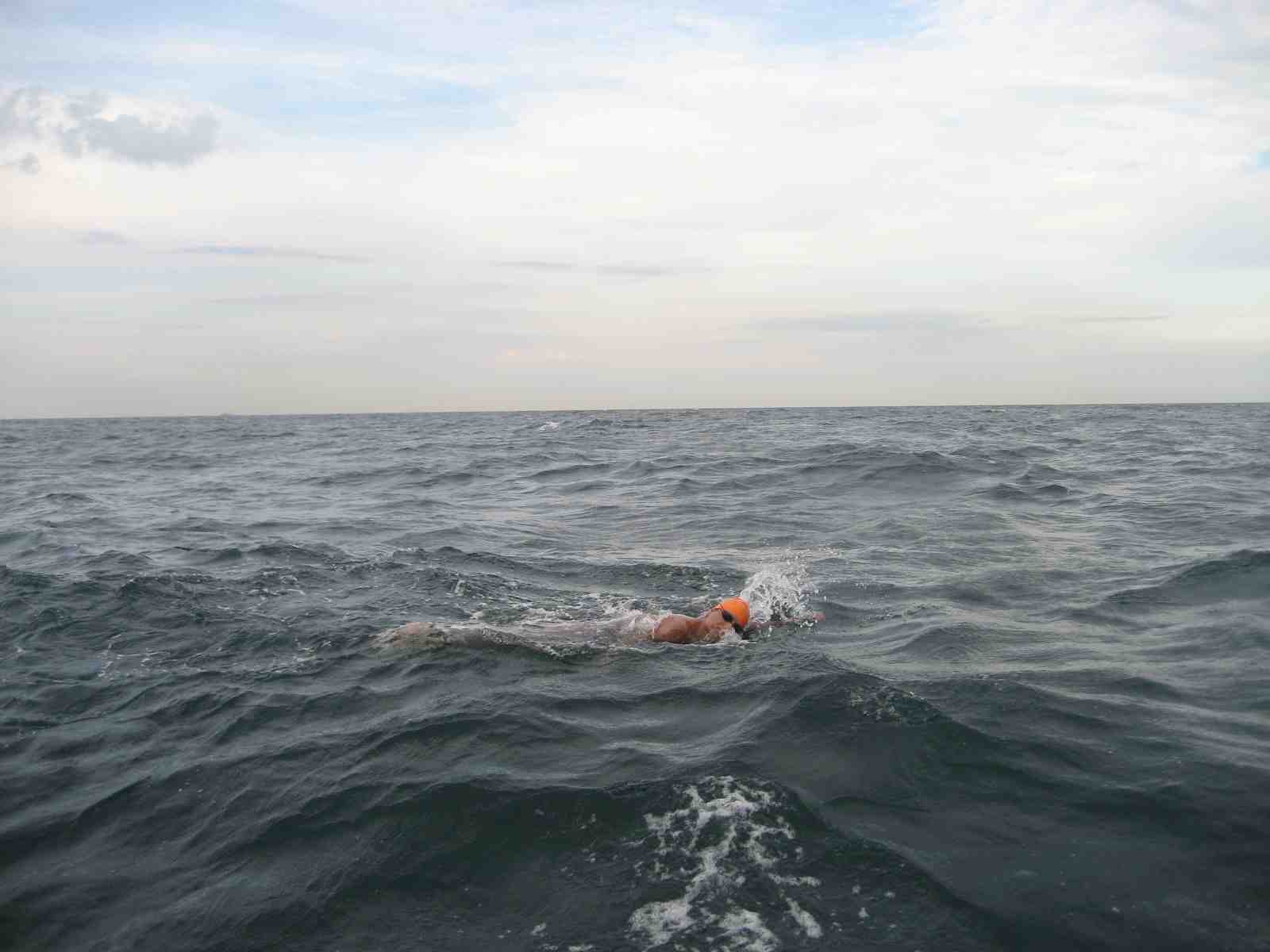 После седьмого часа мой желудок затих и молчал до самого возвращения в Дувр. Энергетической смеси Maximвполне хватало на полчаса интенсивной работы. Я принял еще одну таблетку от морской болезни. Тошнило, но я вработался. Тренер предложил перейти на почасовое кормление, я категорически отказался, испугавшись нарушить только-только наладившееся хрупкое равновесие внутри моего организма. Он был прав, считая, что остановки отнимают много времени, и это серьезно увеличивает дистанцию и время заплыва. 1 лишняя минута остановки = 4 мин потери времени на дистанции. Вот она, арифметика Ла-манша.