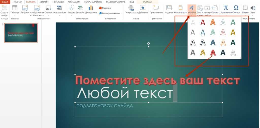 Если же хотите добавить, к примеру, надпись, то выберите соответствующую иконку во вкладке «Вставка»