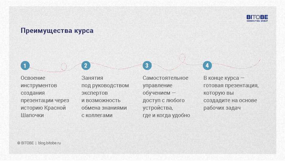 Про стилистику: «Отдельный комплимент стильной визуализации курса, Шапочка, Волк, Бабуля – я просто млею от них, спасибо за курс».