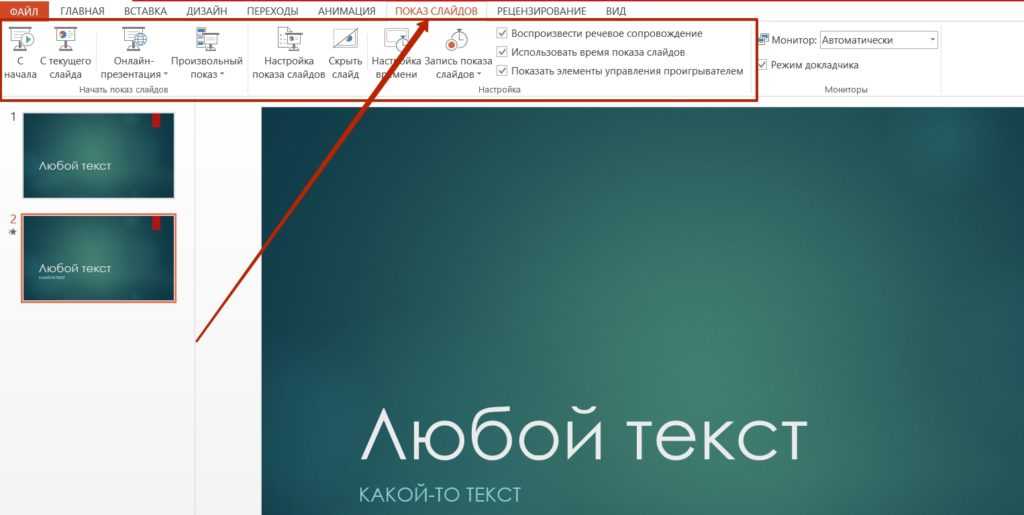 Когда все основные данные внесены, нужно проверить, как все подготовленное вами будет выглядеть в целом. Для этого вернитесь на первый слайд и нажмите «Показ слайдов» или «Слайд-шоу». Слайды начнут воспроизводиться со всеми наложенными эффектами. Посмотрите, все ли в порядке, аккуратно ли размещены элементы на листе, с какой скоростью слайды сменяют друг друга, воспроизводятся ли видео и GIF.