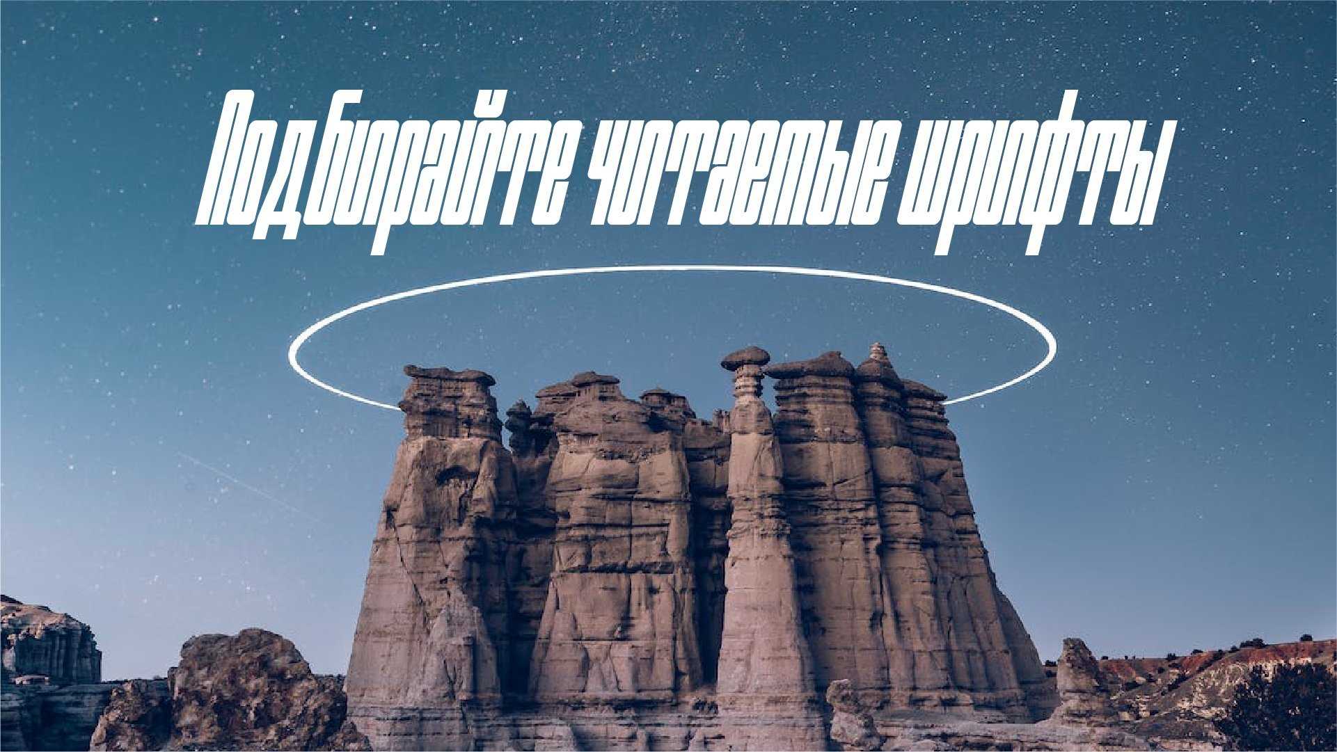 Если вы не уверены, что у получателей презентации установлен нестандартный шрифт и им хватит мотивации, чтобы разобраться, лучше использовать базовые начертания. Calibri или Arial — не преступление, а забота о читаемости. Также можно использовать трендовые в прошлом году Montserrat и Geometria.