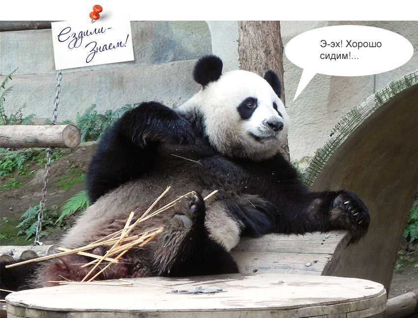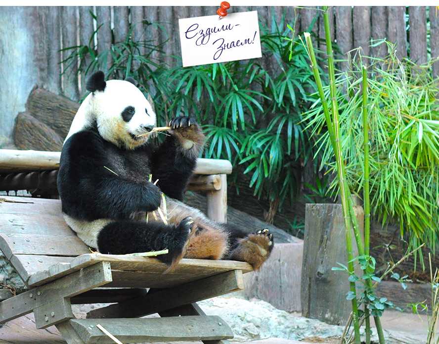 Панда не любит торопиться. Поедание бамбука не терпит суеты и спешки, и должно приносить удовлетворение, поэтому в процессе панда делает эффектные паузы, позируя для фото.
