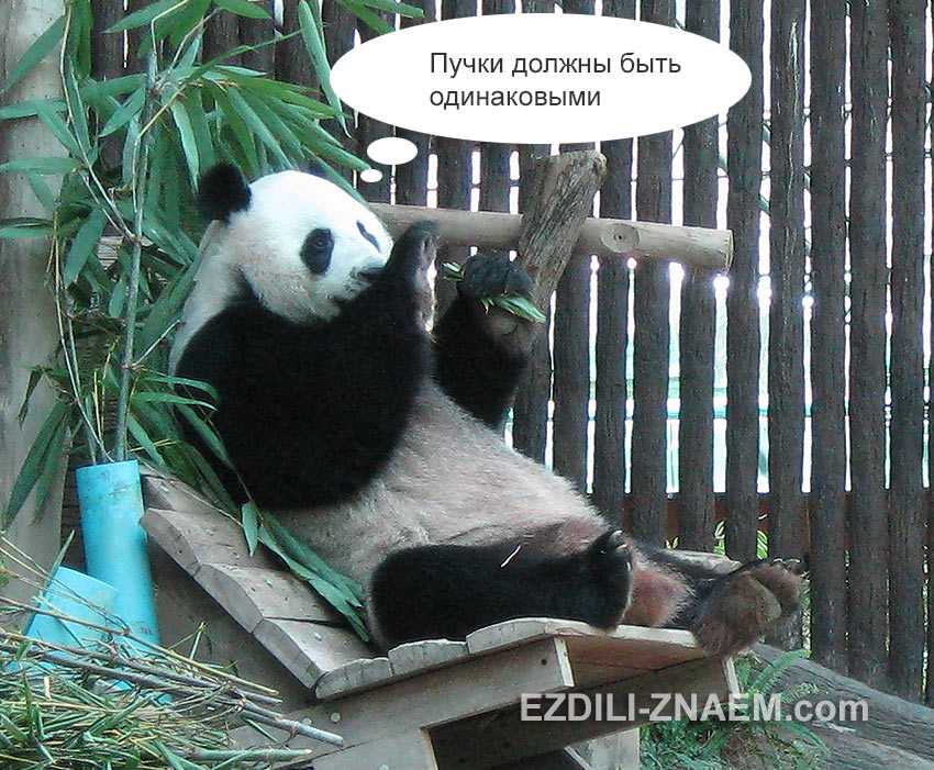 Покончив с молодой зеленью, панда берется за новое задание, – сегментировать бамбуковые дощечки. Панда любит отщипывать тонкие лучинки бамбука и выплевывать их себе на пузо.