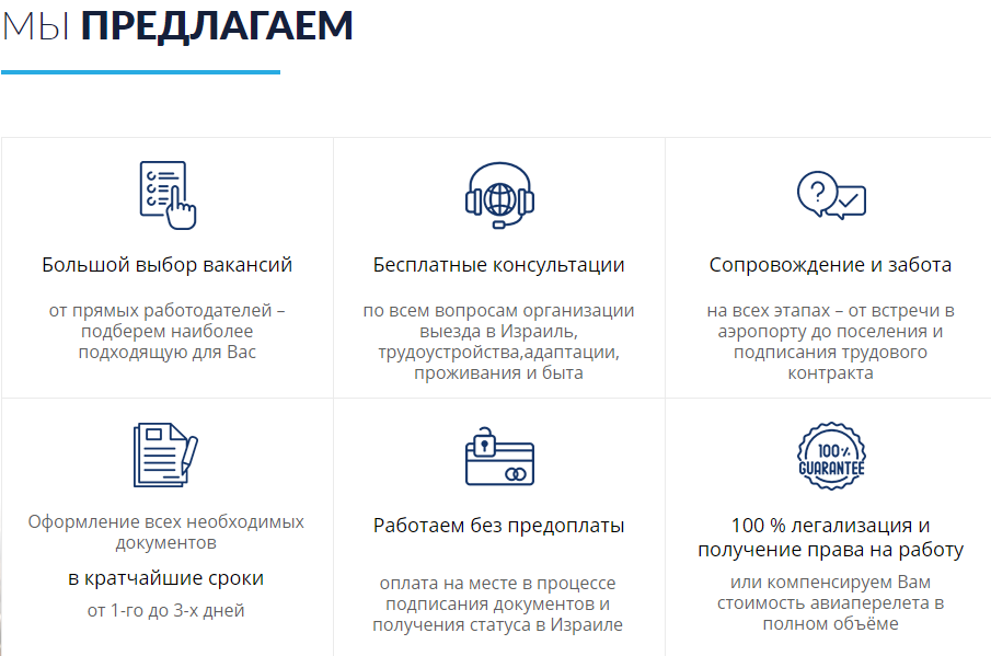100% гарантии – первый признак сомнительной организации. Ситуации в жизни бывают разные. Проблемы у переселенца могут возникнуть по массе причин. Поэтому утверждать о гарантиях выполнения работы точно не стоит.