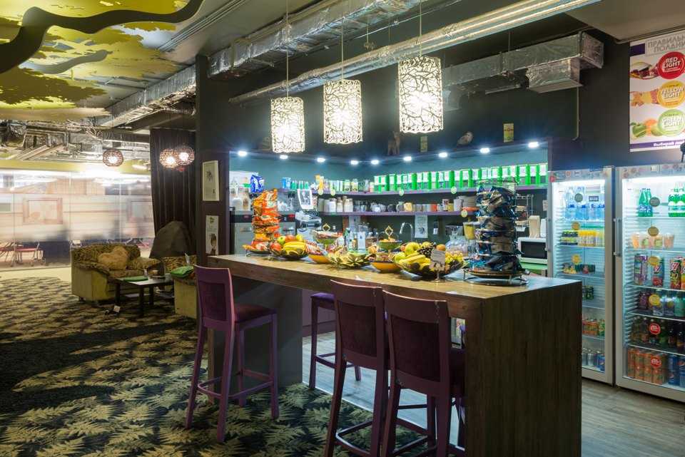 Также можно перекусить в зоне «Лукоморье» с изображением Бабы-яги с одной стороны и придорожным камнем из сказок — с другой. Здесь находится кофемашина и лотки со снеками — батончиками, хлебцами и т. п. Многие сотрудники придерживаются принципов здорового питания, и компания это поддерживает. Цветные cтикеры на лотках c едой дают рекомендации о том, сколько в день можно потреблять того или иного продукта: зелёный — самый диетический вариант, жёлтый и красный лот, соответственно, калорийнее.
