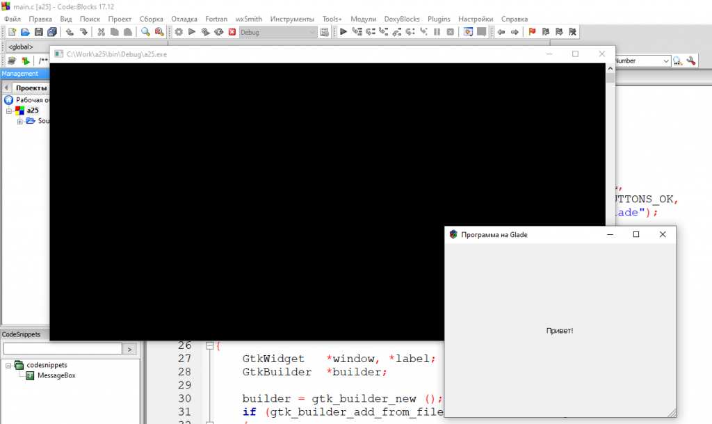 14. Программа на GTK+ работает только в среде CodeBlocks
