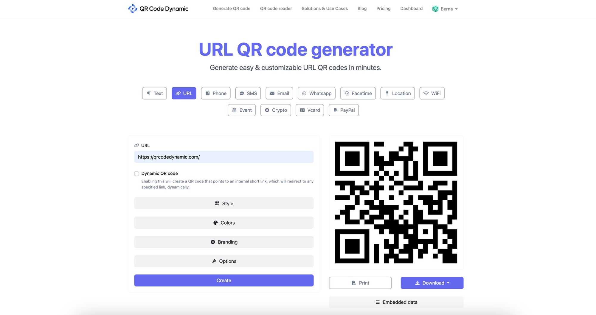 - Generate the QR Code: Once you’ve customized your code, click on the «Create» button. Your dynamic QR code is now ready.