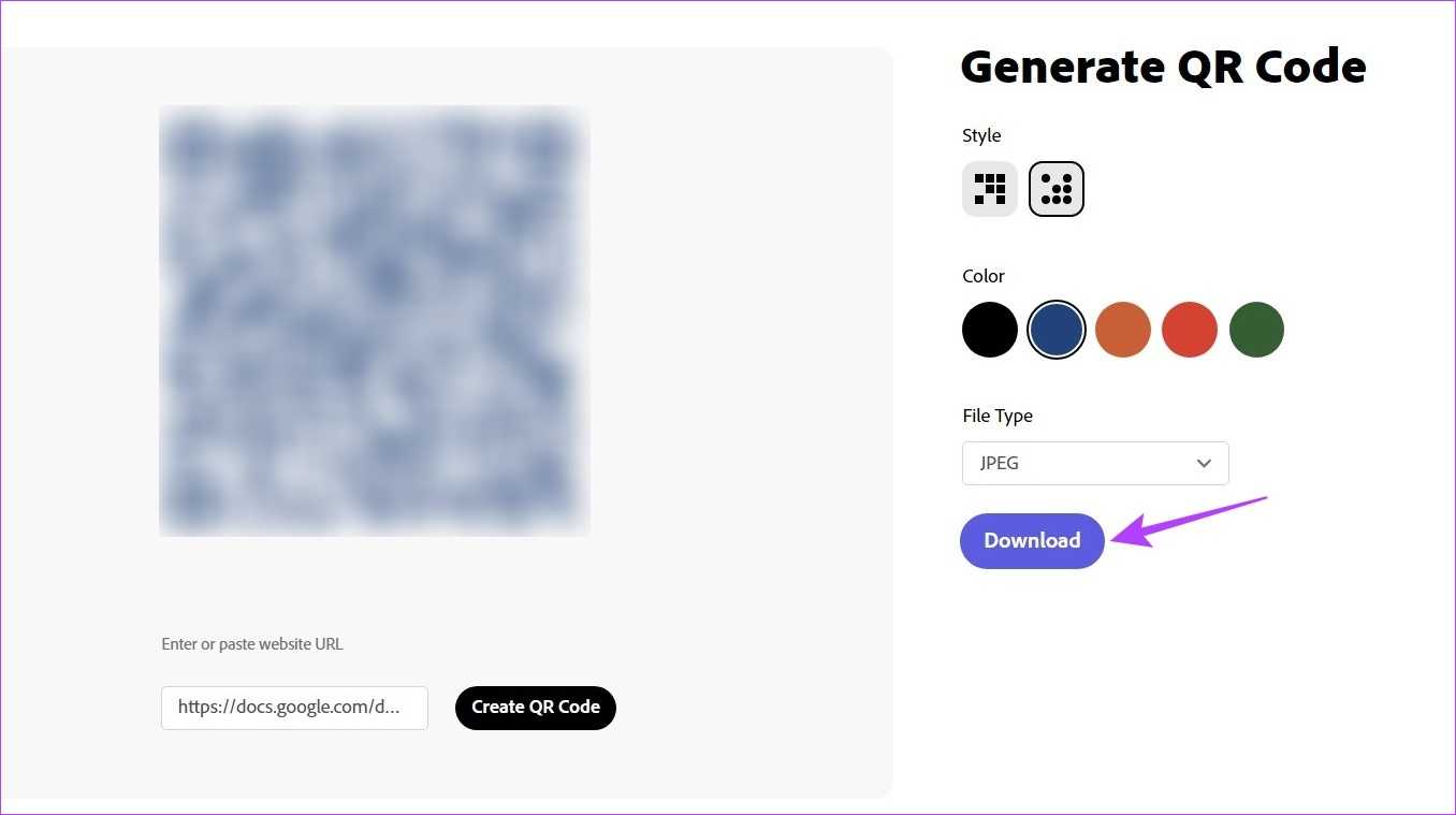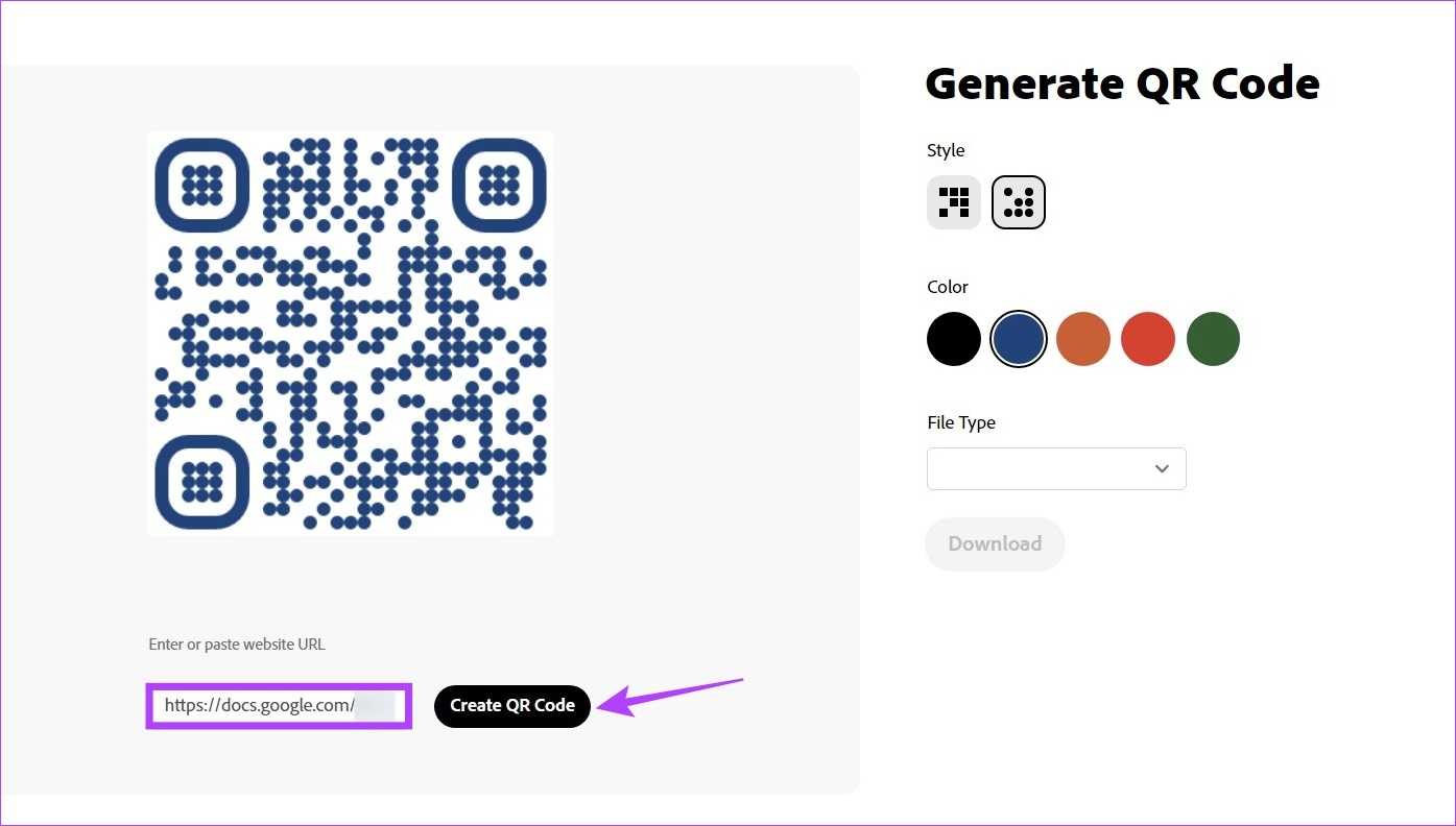 Помимо использования надстроек, вы также можете использовать сторонние веб-сайты, такие как Adobe QR Code Generator, для создания QR-кода. Затем поделитесь своими документами Google, используя этот QR-код. Вот как это сделать.
