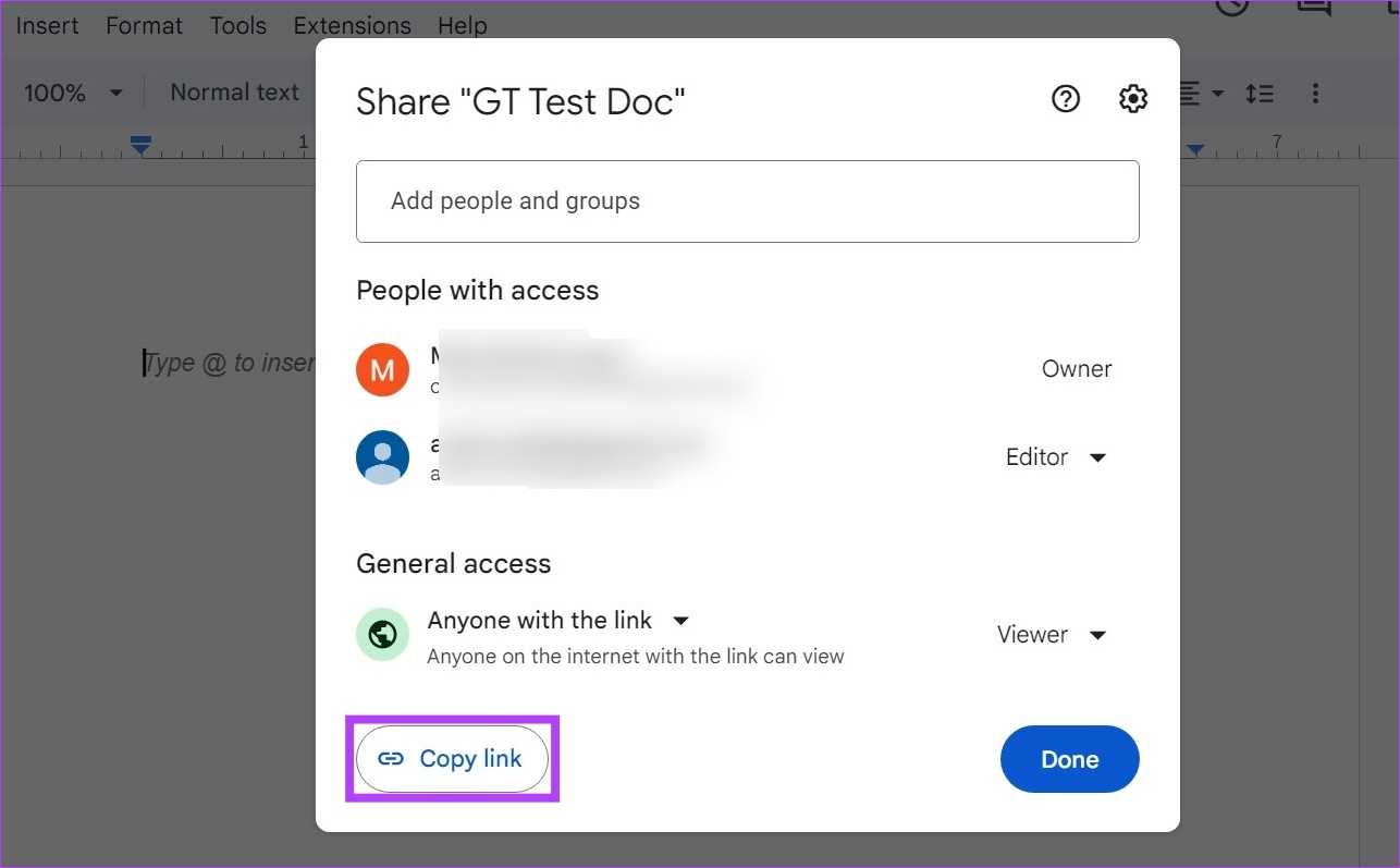 Шаг 3: Здесь добавьте людей в документ с помощью панели поиска. Кроме того, вы также можете обновить добавленных пользователей или общий доступ в соответствии с вашими предпочтениями.