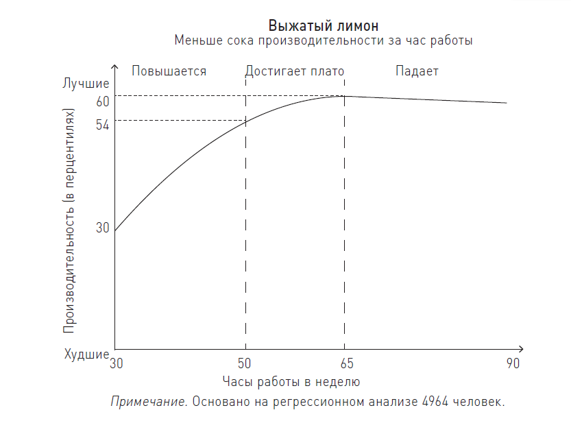 Давили когда-нибудь сок из лимона? Сначала он льется водопадом, но быстро заканчивается. Вы жмете все сильнее, а получаете лишь несколько капель. Дальше стараться бесполезно — сока не будет. Так же мы выдавливаем из себя хорошую работу. В какой-то момент производительность перестает расти — и всё.