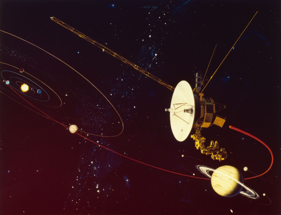 Однако как раз сложилась удачная ситуация – так называемый «парад планет», когда планеты оказываются практически на одной линии, с одной стороны от Солнца. Это позволило разработать такую траекторию полета, когда зонды, пролетая мимо планеты, используют её гравитацию для разгона и могут по кратчайшему пути достичь следующей планеты. Поэтому в итоге «Вояджеры» посетили не только Юпитер и Сатурн, но и все остальные внешние планеты, кроме Плутона, после чего отправились дальше, в открытый космос.