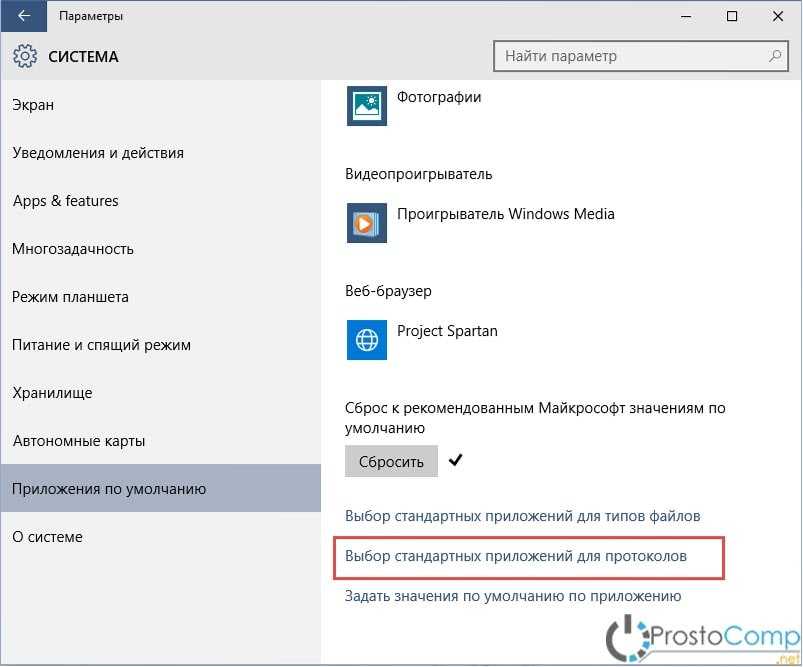 Здесь же можно определить протоколы, которые будут использоваться в программах как основные. В нижней части окна будет такая ссылка для «Выбора стандартных приложений для протоколов».
