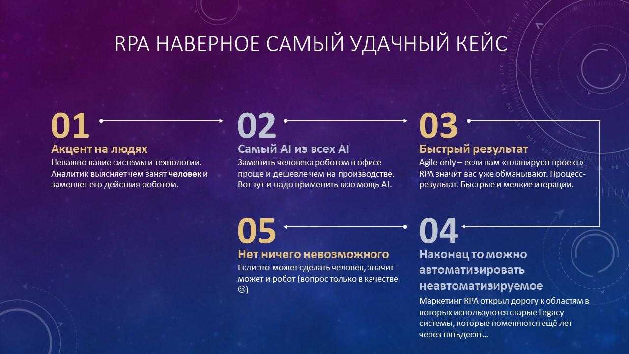 Еще раз про RPA – этот кейс я считаю самым удачным, это реальная замена человека роботами.