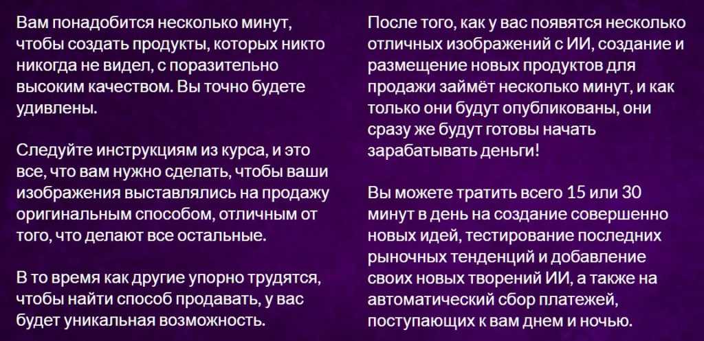 Если на каждое изображение затрачивается так мало времени и усилий, ничто не может помешать вам сделать 10, 25, 50 или даже 100+ таких изображений, которые начнут приносить вам регулярные выплаты уже назавтра.