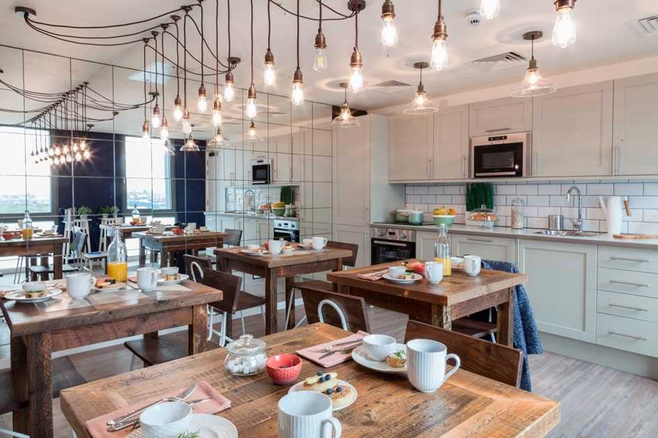 - большие гостиные и кухни, где все жильцы готовят и отдыхают вместе;