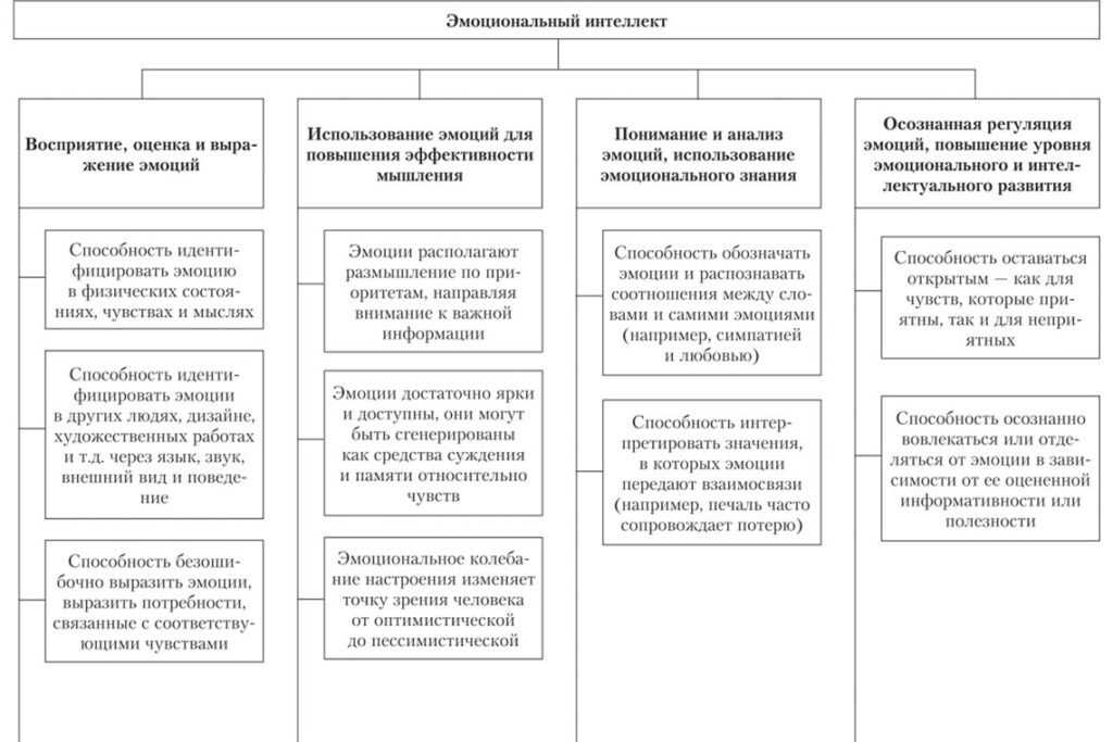 Эмоциональный интеллект состоит из нескольких основных компонентов, которые взаимодействуют друг с другом и влияют на нашу способность эффективно управлять своими эмоциями. Рассмотрим каждый из этих компонентов подробнее.