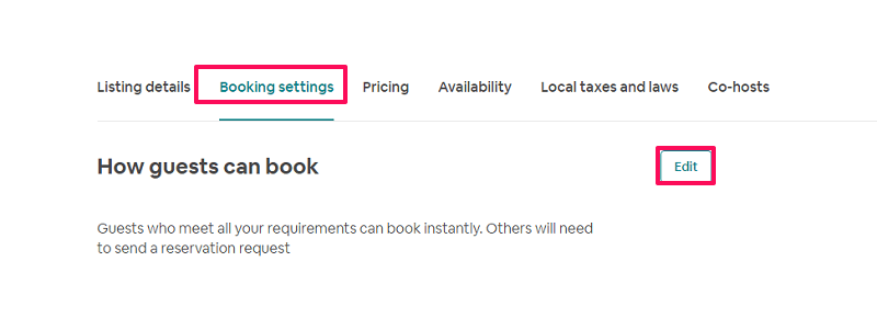 2. На странице со списком выберите Настройки бронирования и нажмите РЕДАКТИРОВАТЬ в Как гости могут забронировать .