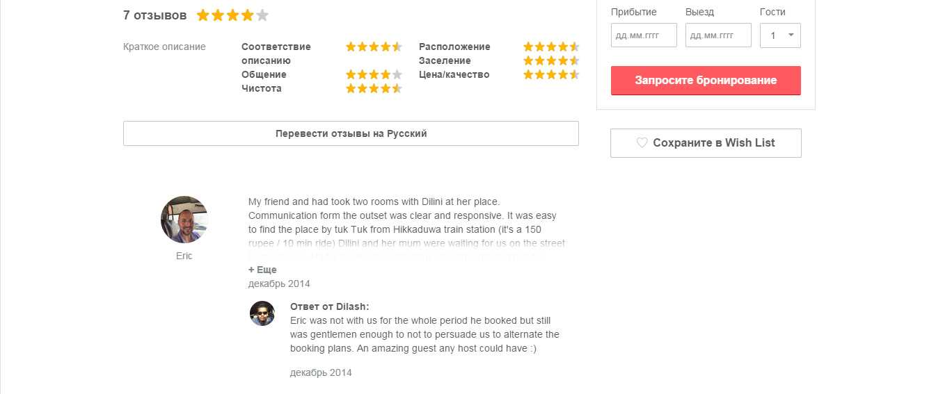 В Airbnb отзывы от предыдущих постояльцев позволяют увидеть интересующее вас жилье не только так, как это представляет хозяин, но и так, как это увидели реальные люди, останавливающиеся в этой квартире до вас.