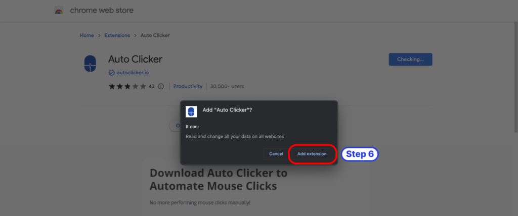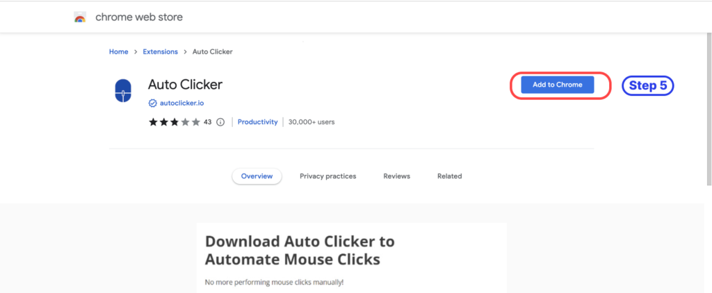 Step 4: Click on the auto clicker and navigate to the extension page.