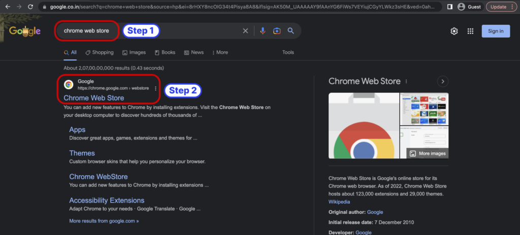 Step 1: Open a new tab in chrome and search for “chrome web store”