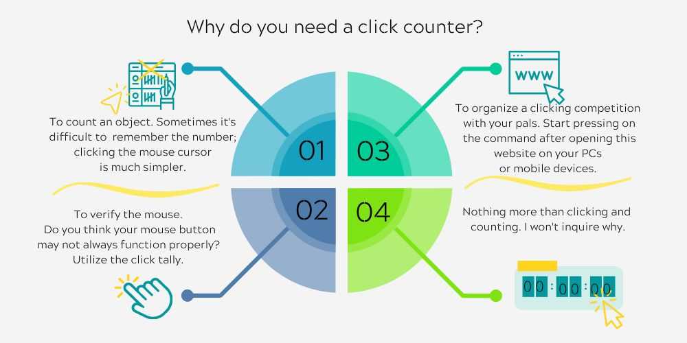Тест скорости кликов — это специальный сервис, который позволяет подсчитывать количество кликов, которые вы делаете за определенное время. Вы можете делать это самостоятельно, считая клики в уме и засекая время с помощью секундомера, но автоматическая проверка будет более точной. Изучите суть клик теста, практикуйте полезные стратегии, используйте уловки и преуспевайте в быстром кликинге.