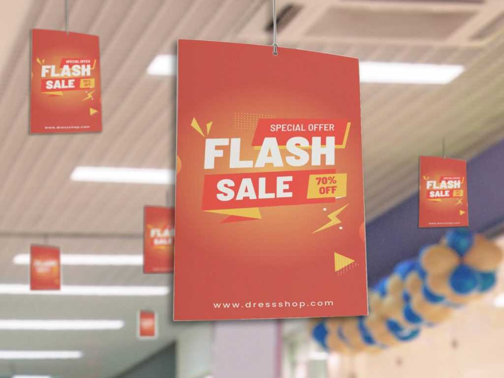 Как следует из названия — это жесткие рекламные плакаты, прямоугольные или фигурные, которые свисают с потолка. Обычно висят на леске или веревке и от движения воздуха в помещении слегка колышатся.