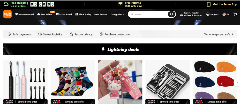 Fashionable products mainly dominate Temu’s product catalogue but overall, it’s quite general.